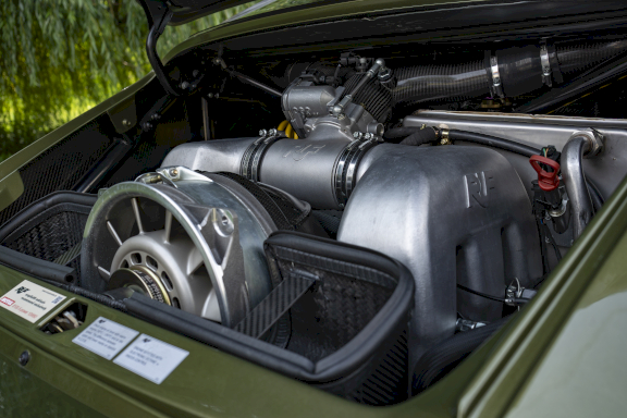 Als Teil des Antriebsstrangs ist der von RUF entwickelte luftgekühlte 3,6-Liter-Twin-Turbo-Motor in ein Kohlefaser-Chassis eingebettet und leistet 550 PS bei 6.750 Umdrehungen pro Minute. Die Konstruktion des Motors basiert auf einer Sechszylinder-Konfiguration und einem Aluminiumblock und -Zylinderköpfen, die eine leichte und robuste Konstruktion gewährleisten.